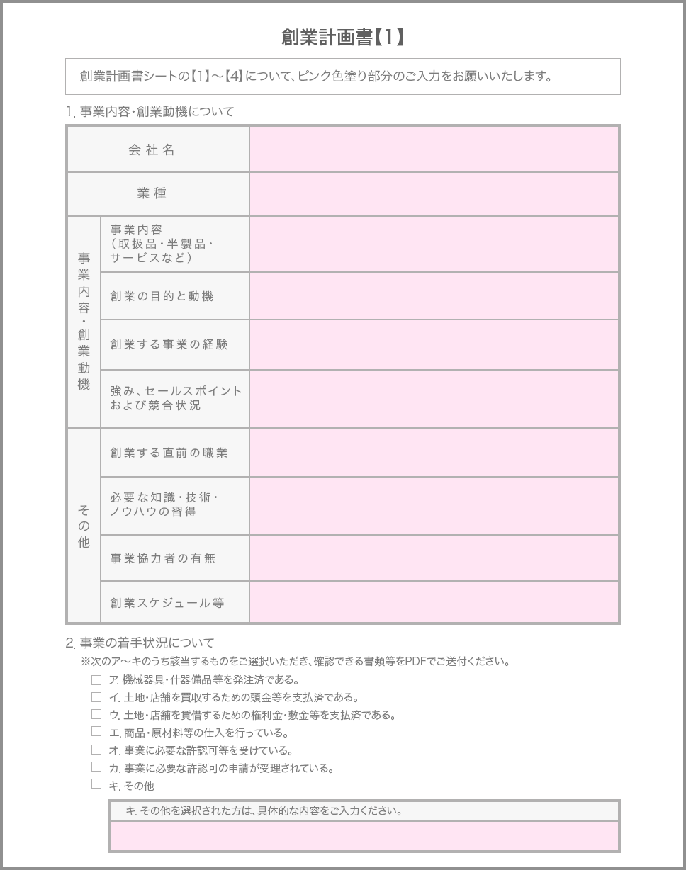 提出形式 申込ページでアップロード 必要部数 1部 注意事項 創業計画書・事業計画書に記載の自己資金がわかる通帳の写しの箇所および名義人のわかる通帳表紙をあわせてアップロードしてください。