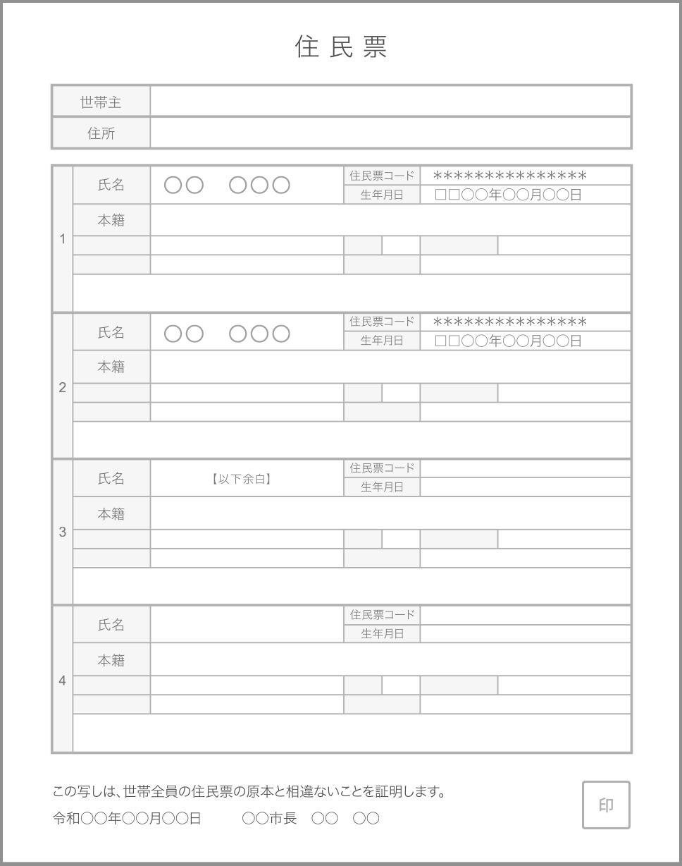 提出形式 申込ページでアップロード後、原本送付 必要部数 必要人数分(法人様分および代表者様個人分。契約の際に連帯保証人が別で存在する場合は連帯保証人の分の印鑑証明書も必要になります。) 有効期限 発行日より3ヶ月以内 注意事項 記載内容を塗りつぶさないでください。